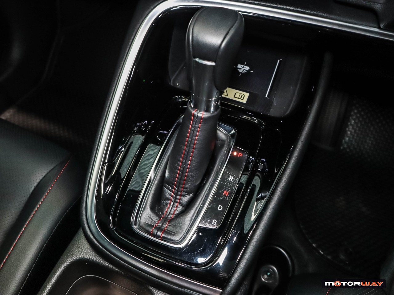 - เบาะนั่งหุ้มด้วยหนัง ตกแต่งด้วยตะเข็บด้ายสีแดง