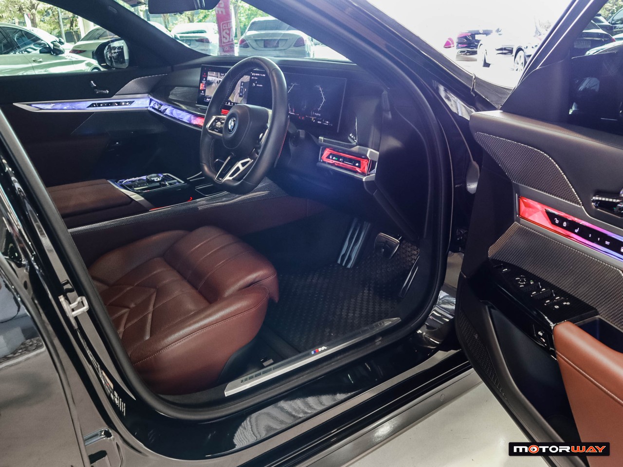 - ภายในห้องโดยสารตกแต่งด้วย Carbon Fiber ถักด้วยวัสดุสีเงินแบบ M